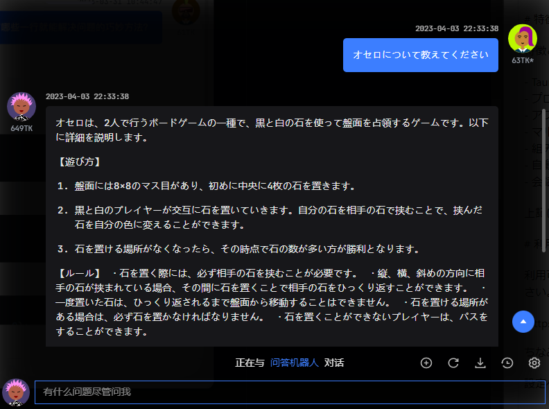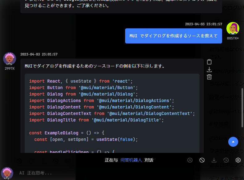 - マルチセッションダイアログをサポート、また GPT-3.5-turbo の最新機能を使用可能