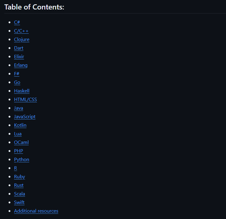 「Project Based Learning」の特徴としては、有名どころのプログラミング言語について抑えてあるところになります。